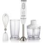 Блендер Gorenje HBC564QW оснащений однією насадкою, міні-подрібнювачем. Вона підходить для збивання рідких інгредієнтів. Також, вона має невелику ємність, всередині якої розміщені ножі, щоб змішувати невелику кількість продуктів. У комплекті також йде мірний стакан, розрахований на 500 мл. Також є насадка віночок для збивання рідких продуктів, які використовуються з різними цілями.