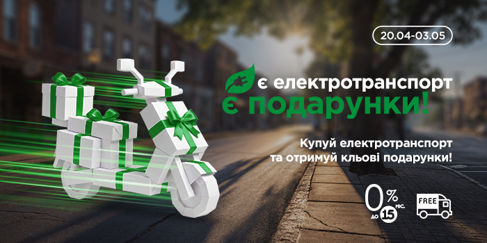 В період з 20 квітня по 3 травня 2026 року в мережі магазинів Дзвінок діє акція: Є електротранспорт - є подарунок. Купуйте електроскутер або електросамокат — отримуйте більше вже сьогодні.