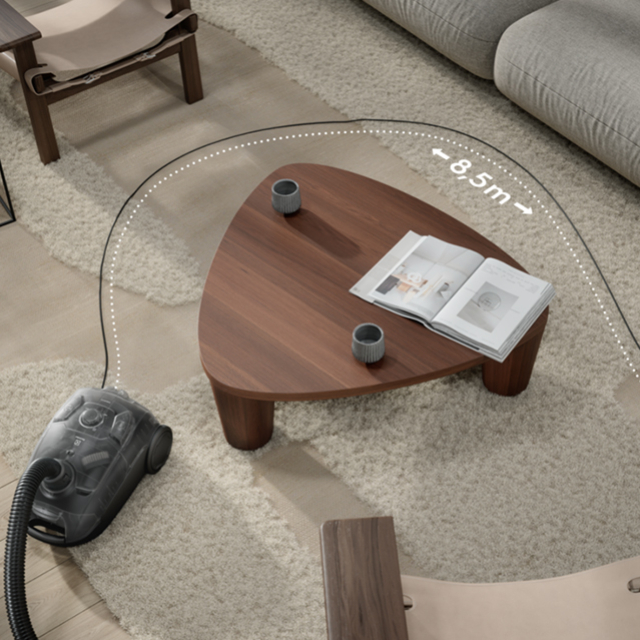 Эргономичный пылесос позволяет очищать поверхности площадью до 72 квадратных метров без подключения к розетке. Благодаря телескопической трубке, большим колесам и радиусу очистки 8.5 метров, вы можете легко передвигаться и делать уборку без задержек.