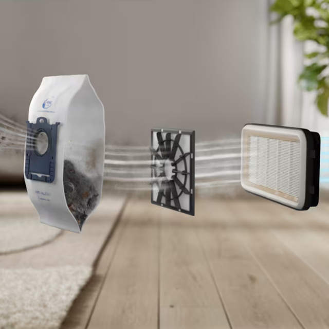 Система высокой фильтрации способна отфильтровать до 99.99%* частиц размером всего в 1 микрон в виде тонкой пыли и пылевых клещей, обеспечивая более чистый воздух на выходе.
