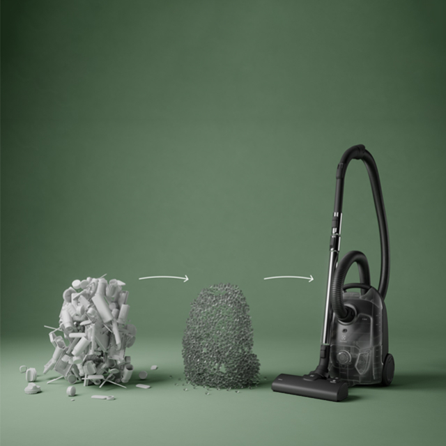 Пылесос с мешком 5000 и основная насадка этого изделия до 37% выполнены из переработанного пластика*.