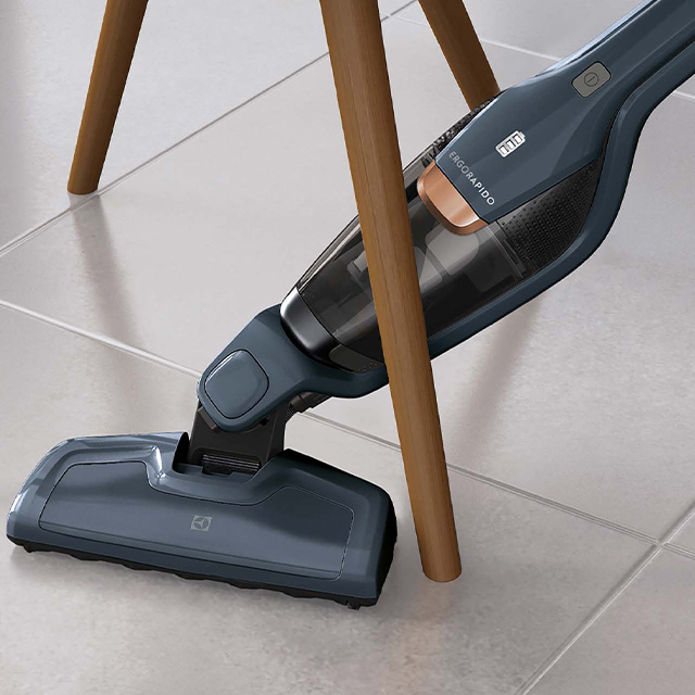 В пылесосах Ergorapido двигатель размещен внизу, что обеспечивает преимущества и удобства пользователю во время эксплуатации: