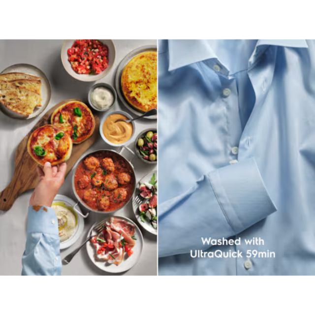 UltraQuick 59min отличается повышенной энергоэффективностью* и оптимизирована для ежедневных загрузок. При низких температурах (30 °C) и за короткое время (59 мин) она обеспечивает устранение пятен на хлопчатобумажных и синтетических изделиях, загруженных вместе.**1.