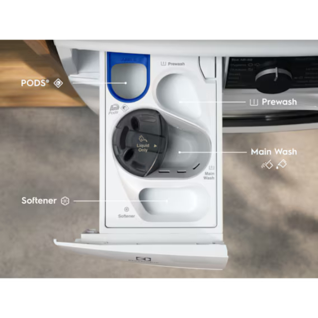 Уникальный выдвижной контейнер UniversalDose подходит для всех стиральных средств, а капсулы PODS* в нем растворяются на 60% быстрее. Его легко выдвигать и разбирать, а вихревое движение воды поддерживает чистоту внутри. Средство для стирки остается до начала цикла, что уменьшает его чрезмерное использование.