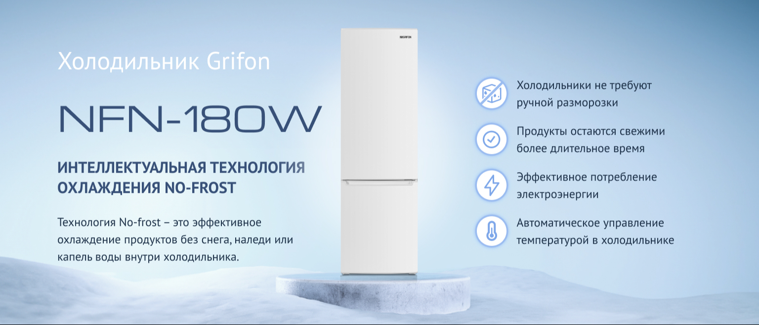 Важным преимуществом при покупке холодильников Grifon является гарантия 30 месяцев от производителя на все комплектующие холодильника.