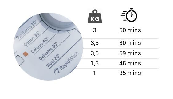 Быстрая стирка слегка загрязненной одежды в течении 30 мин. при температуре 30 градусов для сбережения электроэнергии и времени