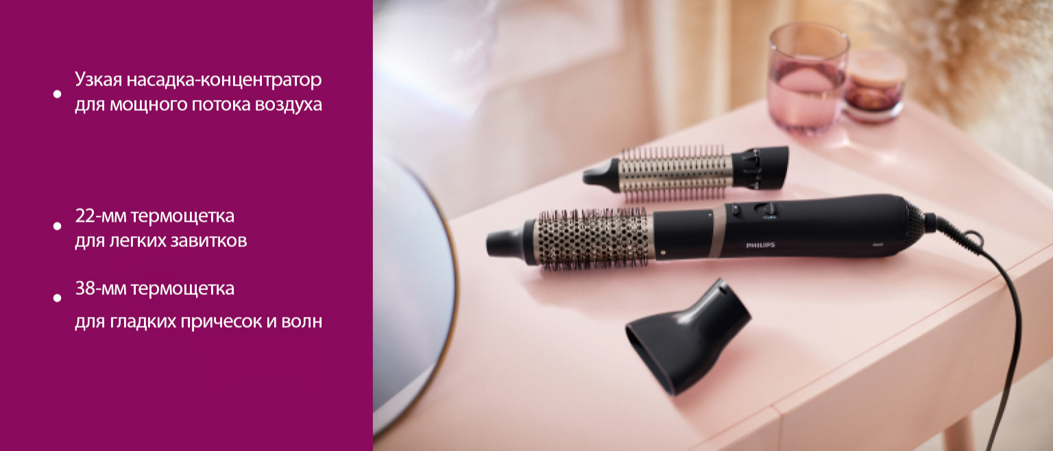 Используйте узкую насадку-концентратор для точной укладки и финальных штрихов с помощью направленного потока воздуха.
