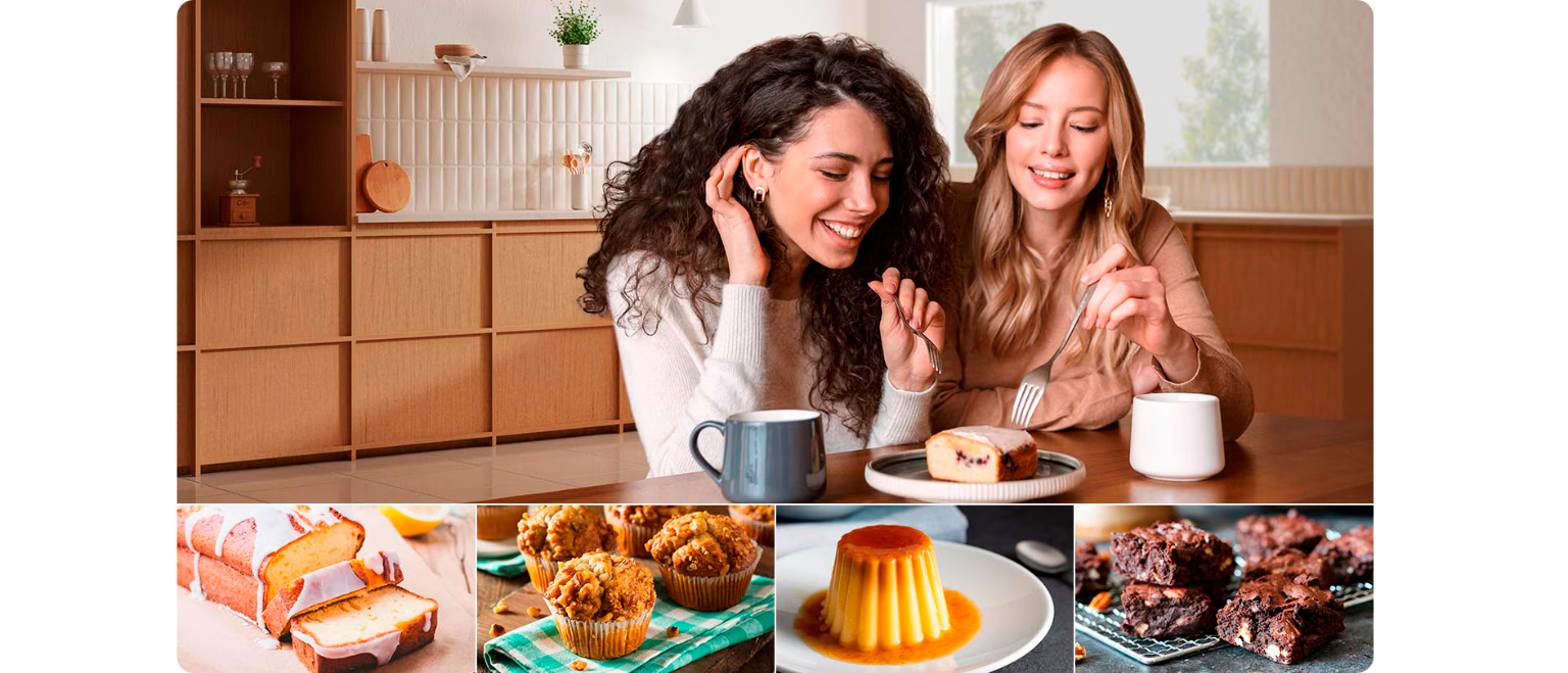 Наслаждайтесь вкусными домашними десертами, не тратя времени и не разогревая духовку. Просто выберите желаемый десерт, смешайте ингредиенты и выберите опцию «Домашний десерт». Это простой способ приготовить разнообразные десерты, включая ореховый пирог, банановый хлеб, бисквит, брауни и яичный пудинг.
