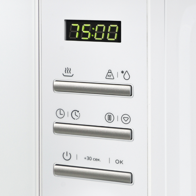 Забыли вытащить еду из холодильника, чтобы разморозить? Теперь это не проблема – микроволновая печь быстро разморозит пищу, сохраняя ее качество и вкус. Просто выберите функцию размораживания и вес в кг (отмечено голубым) на таймере.