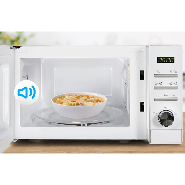 Не упустите момент завершения приготовления! Микроволновая печь Vestfrost подает звуковой сигнал, сообщающий о завершении приготовления.