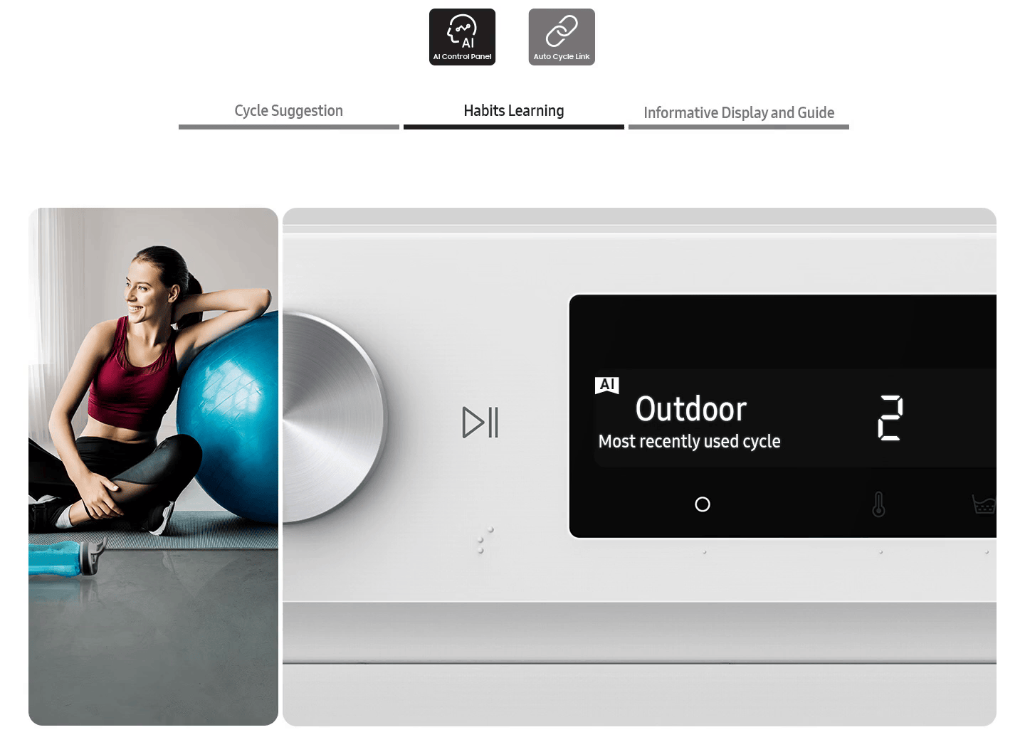 Режим сушіння дозволить вам не чекати, поки ваші улюблені речі висушаться на балконі. З цією пральною машиною ви можете налаштувати індивідуальні параметри сушки, а машина запам'ятає їх та запропонує під час наступного циклу. В додатку SmartThings ви можете прочитати поради щодо циклів та усунення несправностей.