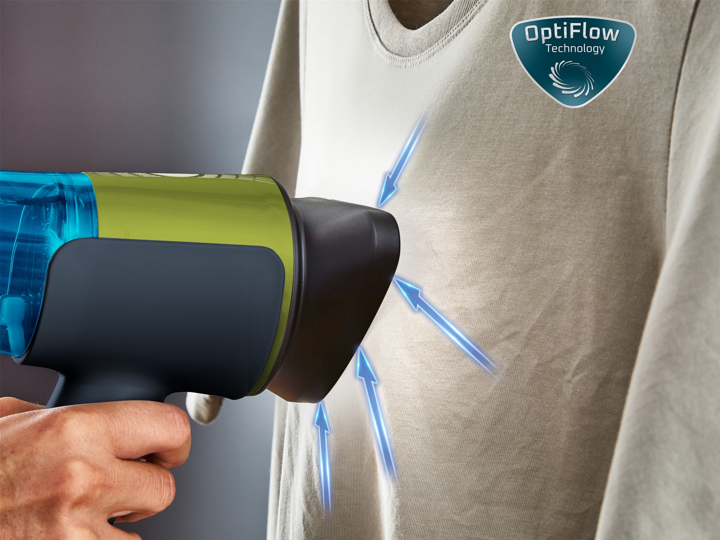 Інноваційна запатентована технологія OptiFlow щільно притискає тканину до прасувальної підошви — для ідеального результату всього за один прохід.